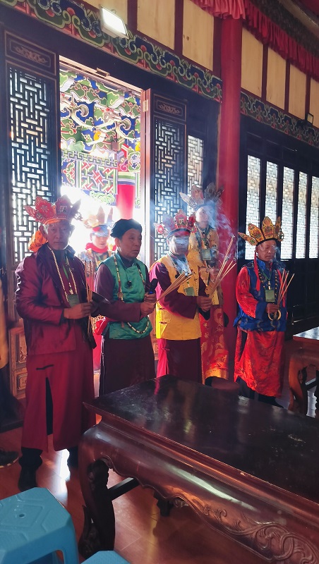 按照传统,东巴们祭拜始祖东巴什罗、相互交流学习、合影留念、最后召开座谈会,纷纷介绍各自的东巴文化保护传承情况,为东巴文化的保护和传承建言献策。