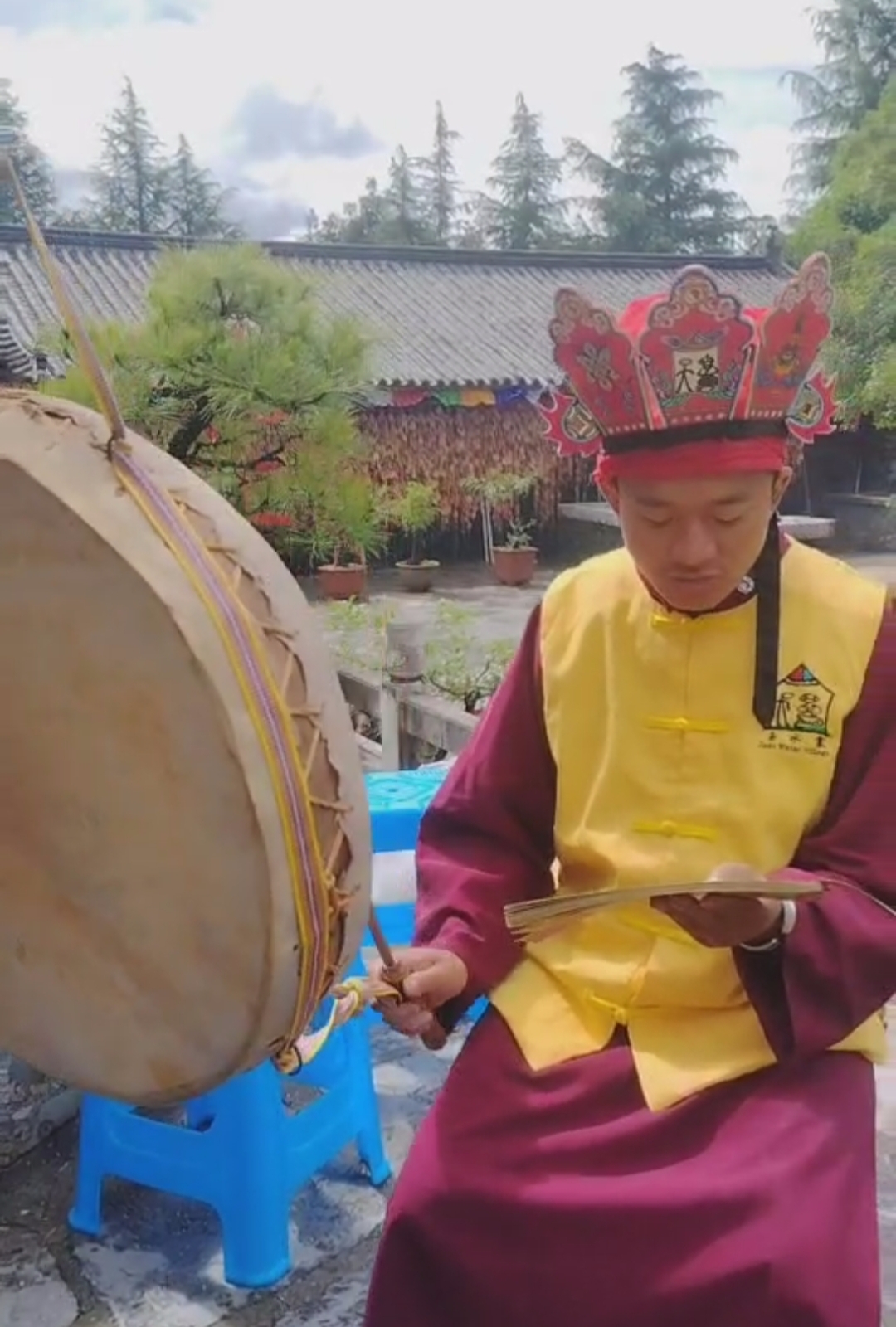 6月29日(农历六月初五),按照传统,玉水寨东巴院举行顶灾仪式,仪式由石春东巴主持,全体东巴院东巴参加。
