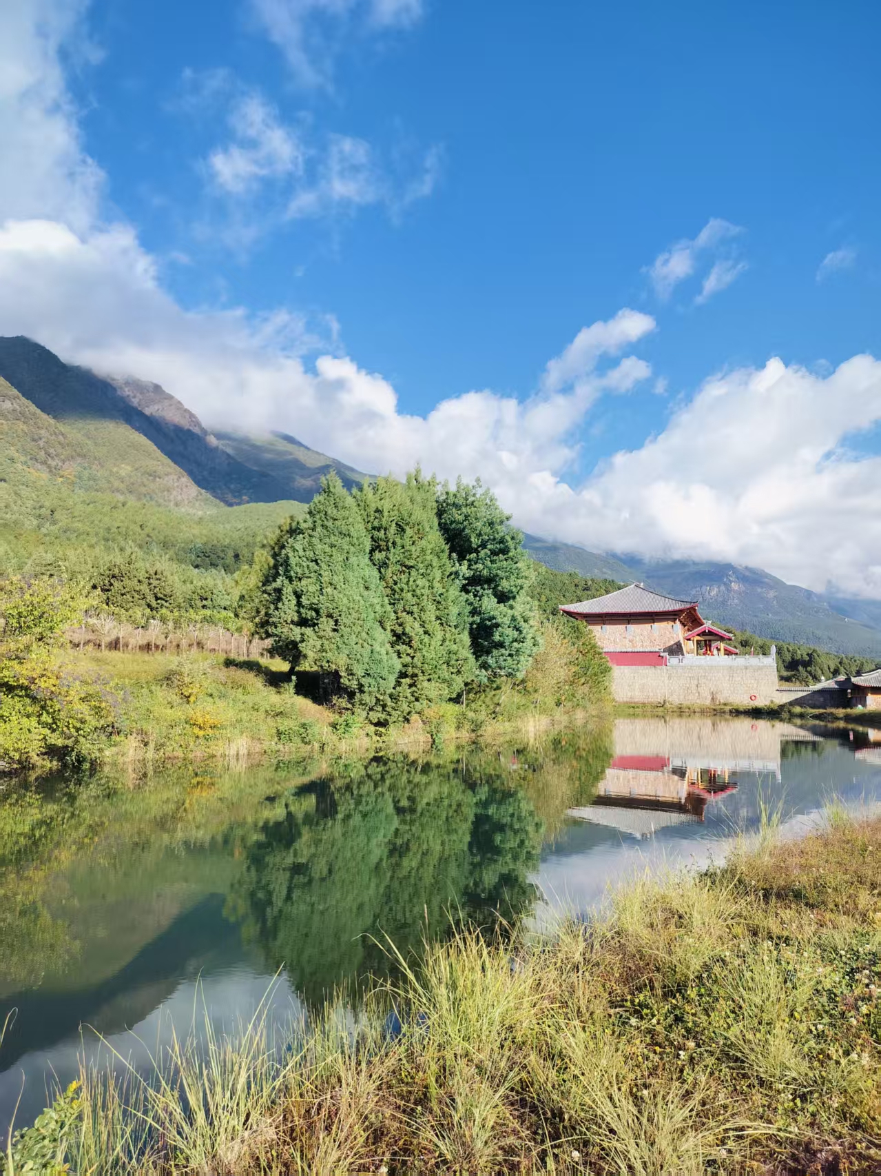 美鲁纳西村纳西先贤祠的正北方是祭天场,祭天是纳西族三大祭祀活动之一,纳西是祭天的子民(“纳西美补若”),纳西以祭天为大事"(纳西美补迪”)。所以,来到丽江就不能不了解纳西族的祭天。祭天祭的是天地和天舅父,感恩为我们人类养育了美丽贤惠聪明的人类第一个祖母,从而让人类血脉得以延续,是纳西最为传统的民俗活动之一。
